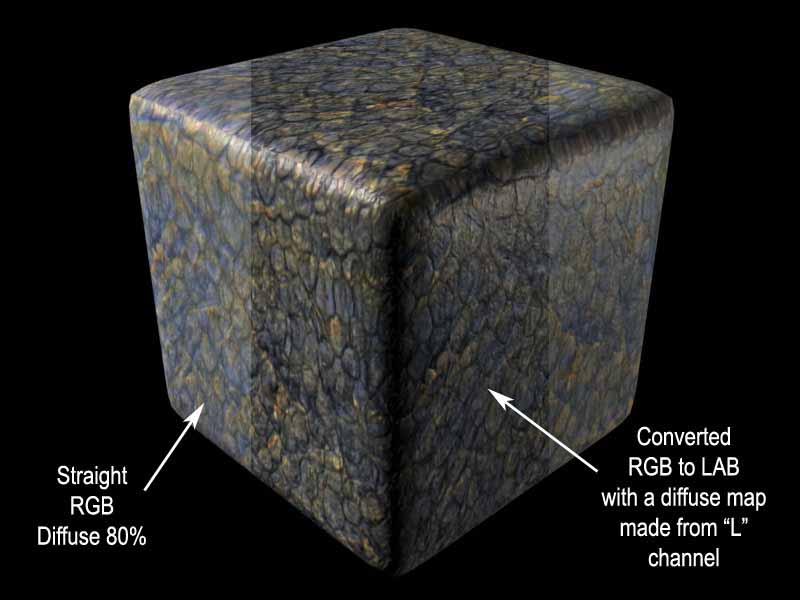 –In this comparison of renders, the first used the unaltered map ONLY in the color channel(In Maya, this would be the color node)